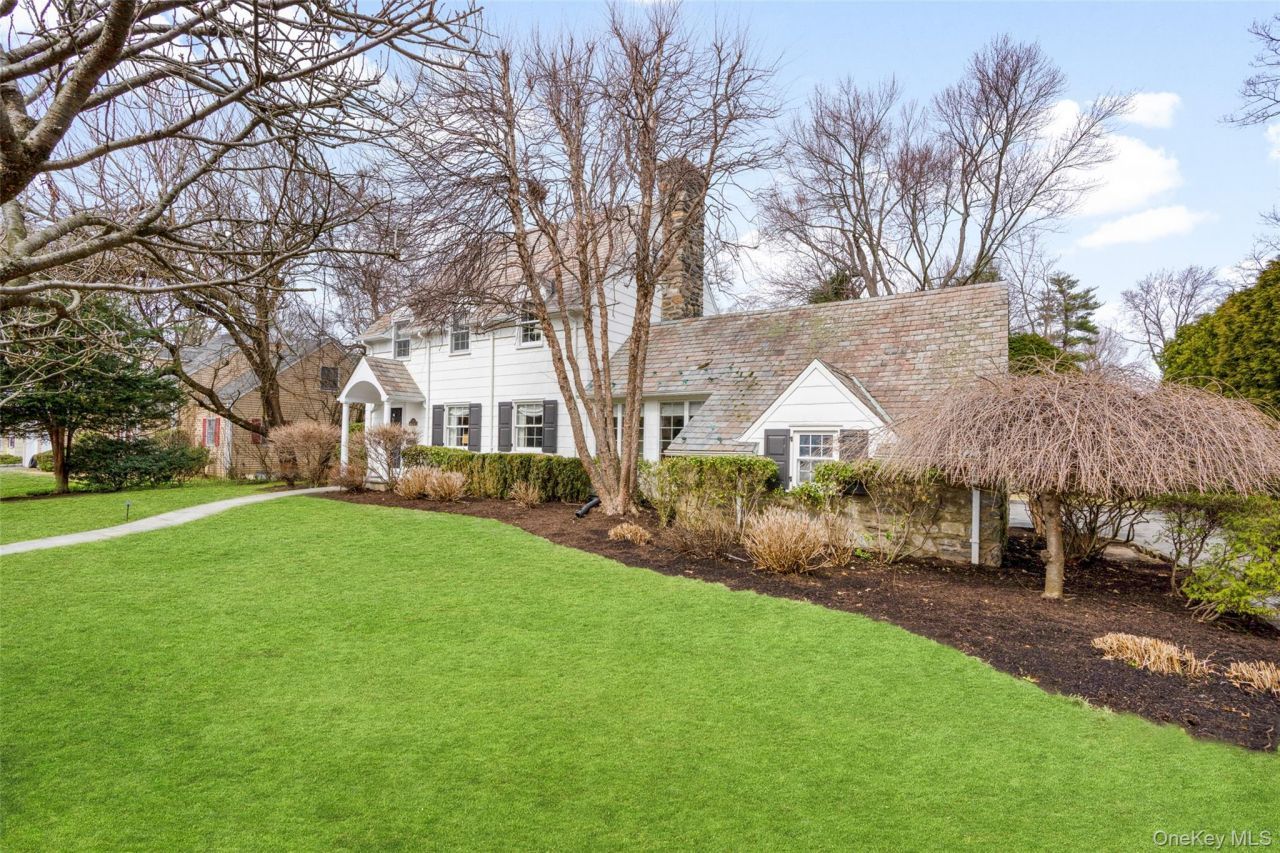 With exceptional curb appeal and gracefully set on a level .20 acre landscaped parcel in the Wykagyl neighborhood, this classic, 2-story 3-bedroom, 3-bath Colonial balances classic elegance and design details alongside modern style, comfort and functionality. An inviting entry foyer leads to a gracious living room with fireplace, gorgeous moldings, rich hardwood floors, built-in cabinet, bookshelves and a glass door to the charming family room featuring a custom wood-paneled ceiling. French doors open to the spacious dining area with window seat and the renovated kitchen featuring white cabinetry, quartz counters, a Bertrazzoni gas range, breakfast island, built-in desk area and glass door to the spacious deck and yard. A practical mudroom offers radiant heated floors, custom closets, coat/bag hooks, and convenient door to driveway (with basketball half-court), garage and yard. The second floor primary suite includes three custom closets and a renovated ensuite with double vanity/dual sinks. Two additional bedrooms share an updated hall bath. Bessler stairs lead to a full-height, windowed attic offering exceptional storage and possible future potential. The full lower level provides a large recreation room with a second fireplace and closets, laundry and storage/utility rooms and exterior access. Curated by an owner with an exacting eye, this turnkey home is highlighted by original millwork, custom architectural details, and enhanced by quality, timeless updates. Close proximity to shops, restaurants, schools, parks and recreation complete this exceptional offering.