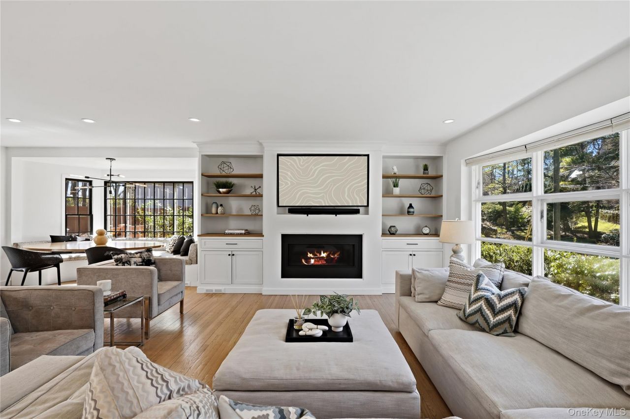 Renovated and move-in ready, 294 Murray Avenue offers a desirable open floor plan and modern updates throughout. The spacious living room features custom built-ins flanking a gas fireplace and flows into the dining area with a custom circular banquet, bay window, and new sliding doors to the deck. The renovated kitchen includes custom millwork cabinetry, an oversized quartzite center island with seating, Bosch dishwasher, stainless sink, appliance garage, coffee bar, skylight, and direct access to the deck. Brand new oak flooring, new recessed lighting, and updated fixtures enhance the home.The first level includes a primary bedroom with renovated ensuite bath, an additional bedroom, playroom, full hall bath, and abundant closet space. The second level offers two additional bedrooms - one large enough for multiple purposes or flexibility, and a full bath. The 500 square foot finished lower level, renovated in 2023, features recreation/family room, a gym with rubber flooring and mirrored wall, laundry, and extra refrigerator. The additional 500 square feet in the lower level is not included in the total square footage, and has a certificate of occupancy. This brings the total square footage to 2280 total living space in the home.Outdoor improvements include Trex decking (2023), new railings, refreshed landscaping, and a new walkway (2026). Conveniently located near Murray Avenue Elementary, the train, town, and the Leatherstocking Trail, this home offers the opportunity to move right in, and an exceptional Larchmont lifestyle of convenience and community. Not to be missed!