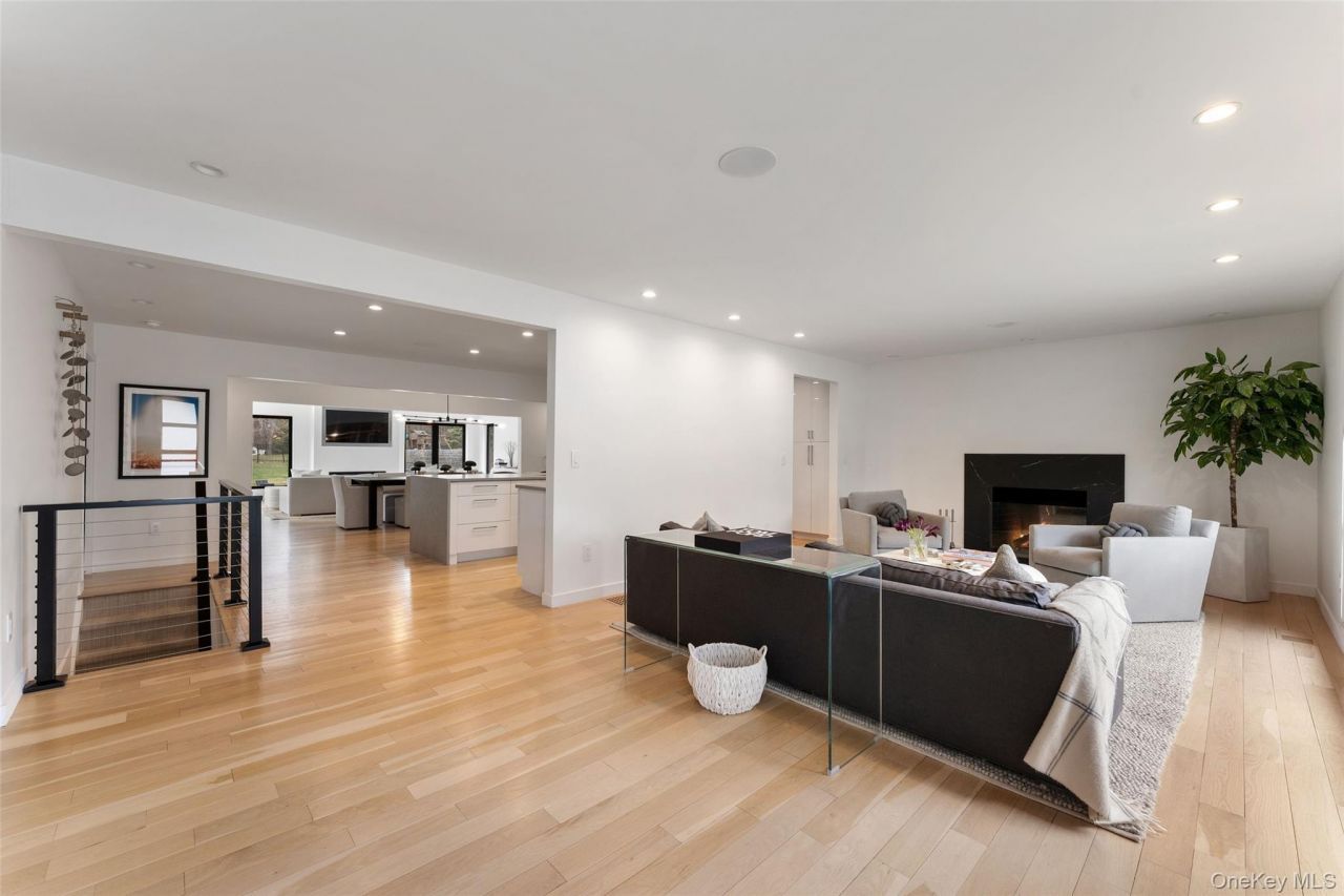 Move right into this sophisticated ranch, bathed in sunlight and set on one of Ardsley's most desirable streets! The meticulous craftsmanship and thoughtful details of its complete 2019 designer renovation are evident from the moment you step inside and discover the chic formal living room with a wood burning fireplace, large picture window, and exquisite hardwood floors. The heart of the home is its great room, starting with the sleek chef's kitchen with high-end stainless steel appliances, modern custom cabinetry, and an enormous waterfall island with bar seating, connecting to an airy formal dining area and show-stopping family room with soaring vaulted ceilings, gas fireplace, and oversized windows and sliding glass doors opening to the patio and flat 1-acre level property, perfect for indoor-outdoor dining and entertaining. The home boasts a coveted main floor primary bedroom suite with two large walk-in closets and an en suite bathroom with an oversized shower and double vanity. There are two additional large bedrooms on the main floor which share a Jack and Jill bathroom with a double vanity and shower and tub. A powder room and a mudroom complete the main level. Downstairs, an additional 830 sqft of finished space (not included in the total square footage) includes a second large family room, gym/office space, a full bathroom, laundry, and plenty of storage. Outside, year-long fun awaits, from making s'mores around the firepit, to enjoying a game of basketball on the lighted half-court. New roof (2019), new siding (2019), all new windows (2019) all new appliances (2019). This is the one you have been waiting for!
